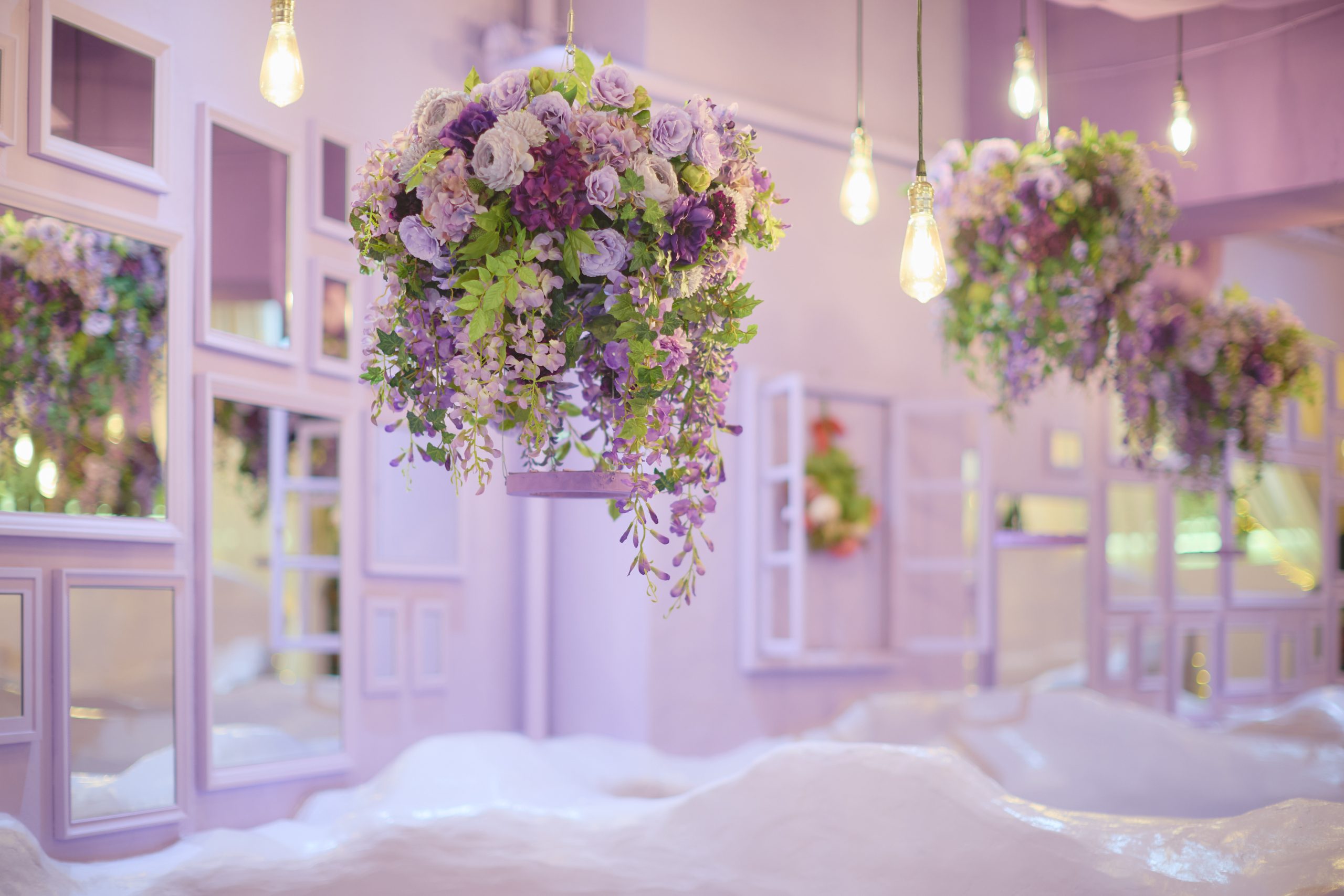また、上空に広がる花束の下にスマートフォンをセットすることで、お食事シーンを美しく撮影できるテーブル席もあり、多くのお客様に愛されています。